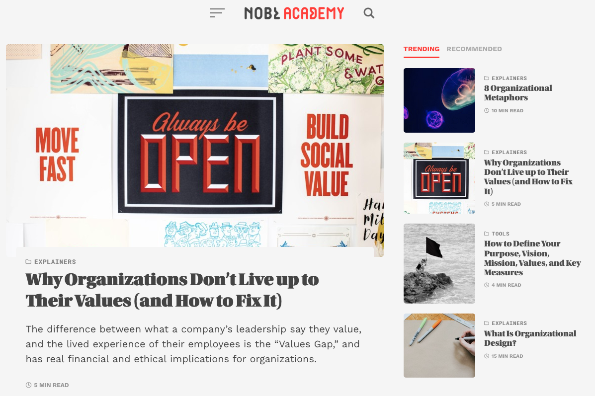 With over 300 tools, frameworks, and case studies, the NOBL Academy offers simple and practical advice for implementing new ways of working. As Editor-in-Chief of the Academy, as well as our acclaimed newsletter, I research, edit, and write on a weekly basis.
